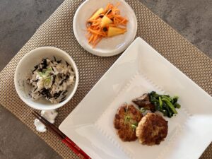 クッキングメニューは和風ハンバーグ・キャロットサラダ・ひじきご飯です